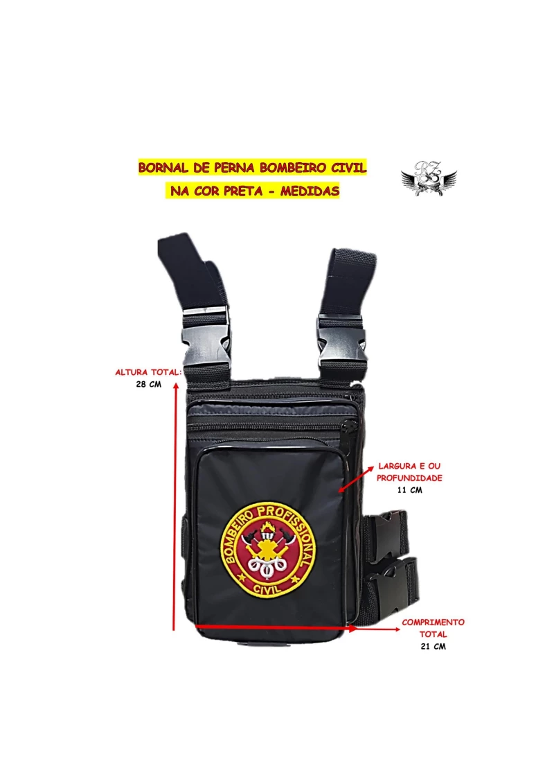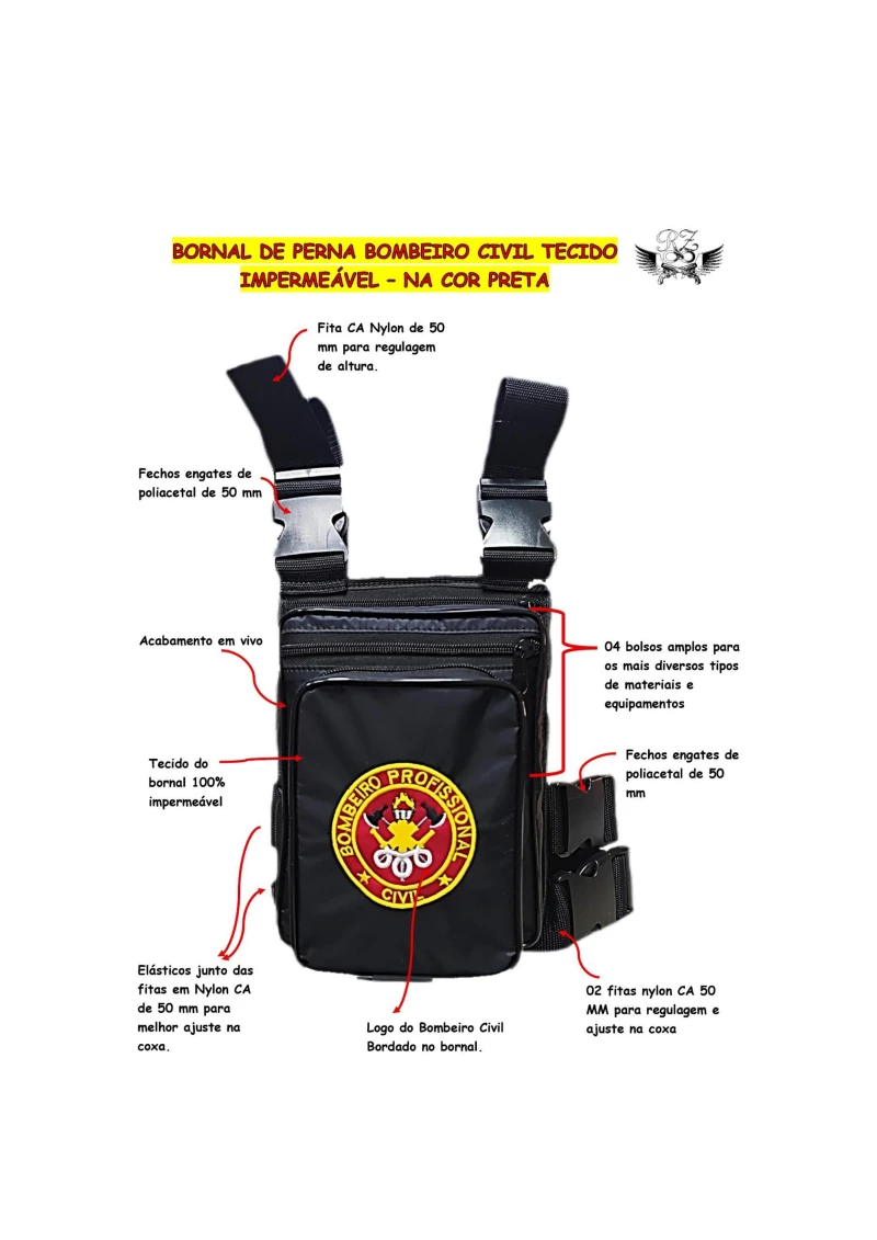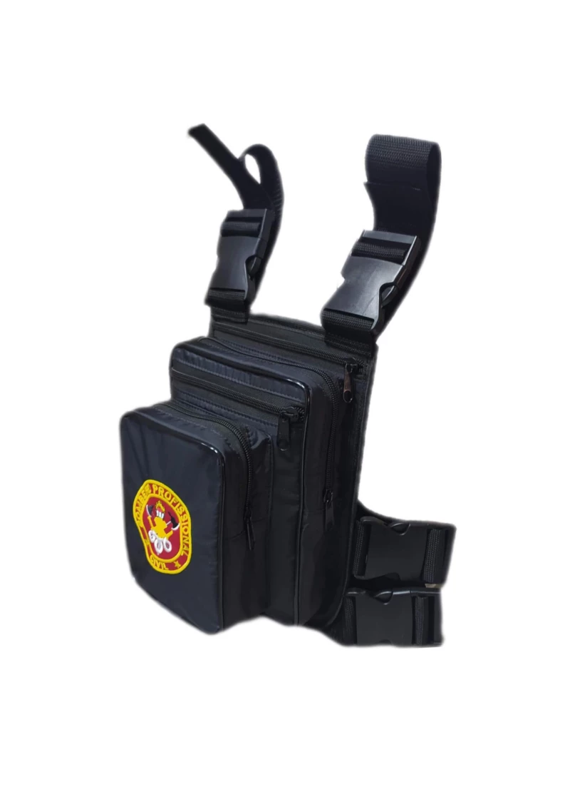 - Personalização: Brasão do Bombeiro Civil no bolso médio, tornando o bornal facilmente identificável e único.