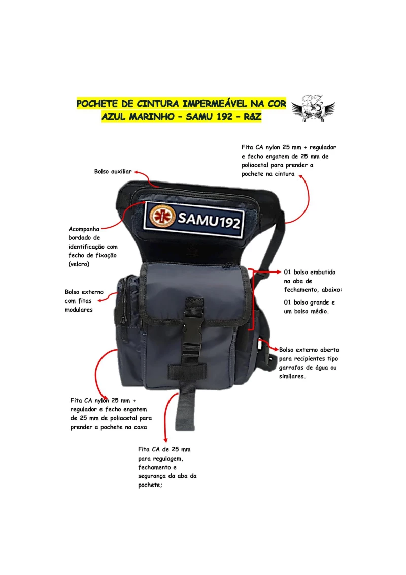 POCHETE, BOLSÃO DE CINTURA BOMBEIRO, SAMU IMPERMEÁVEL