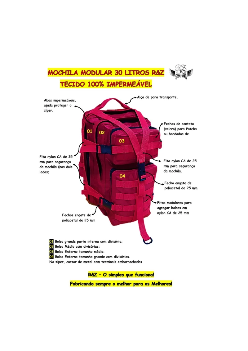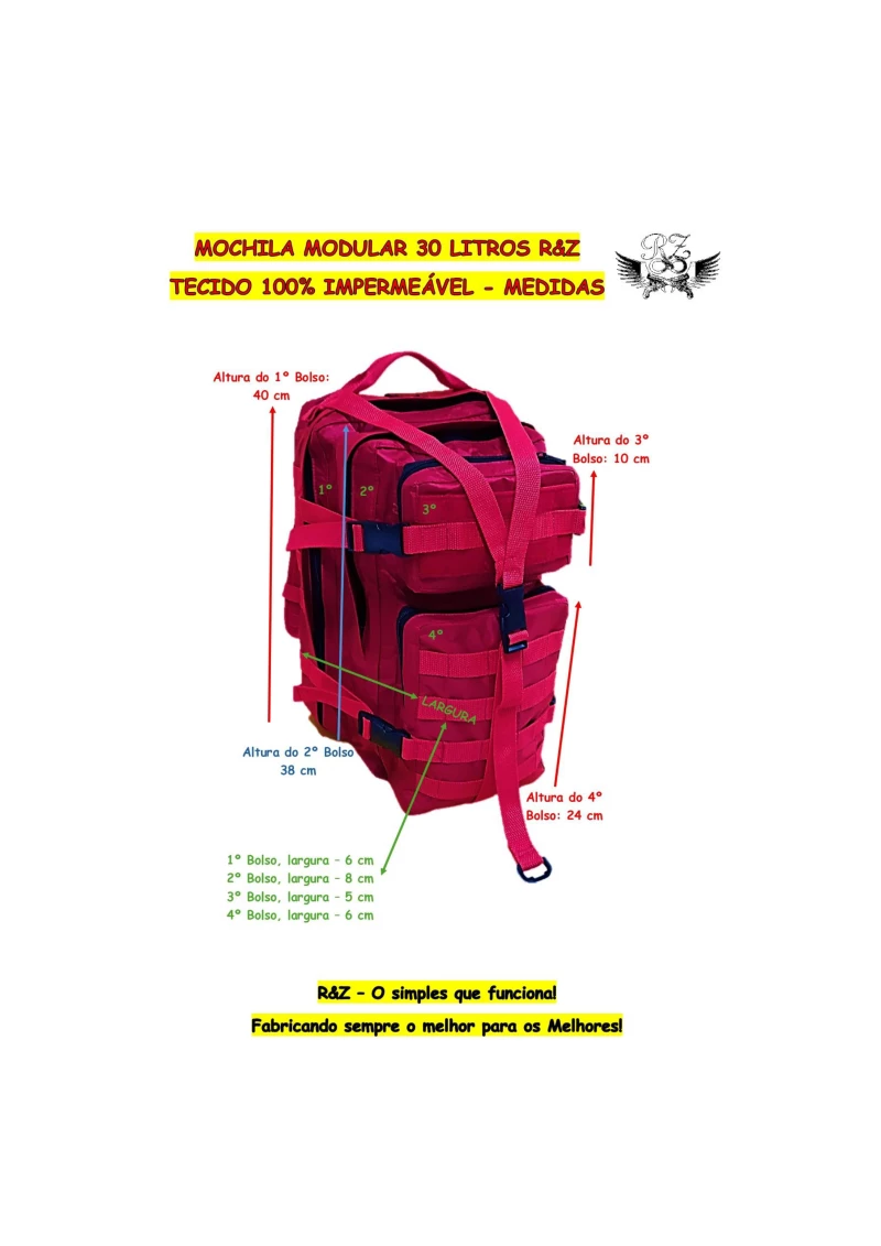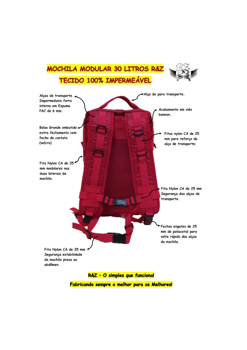 MOCHILA 30 LITROS IMPERMEÁVEL NA COR VERMELHA (BOMBEIRO)