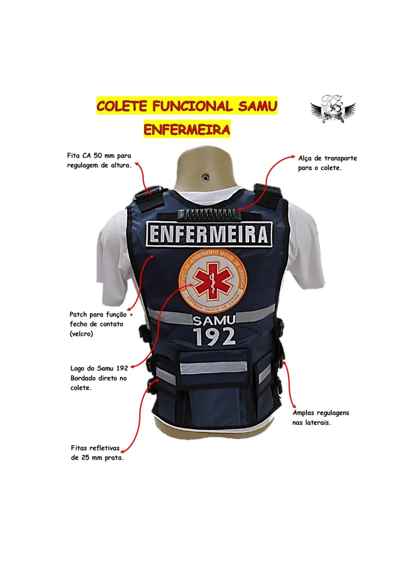 COLETE OPERACIONAL SAMU AZUL COM BORDADO DE IDENTIFICAÇÃO: