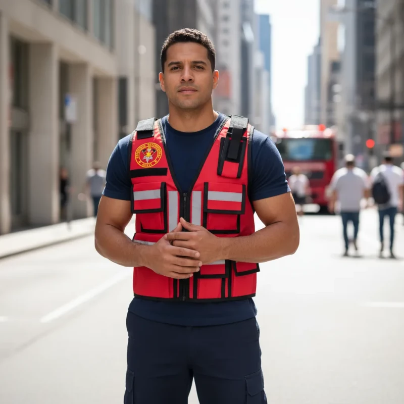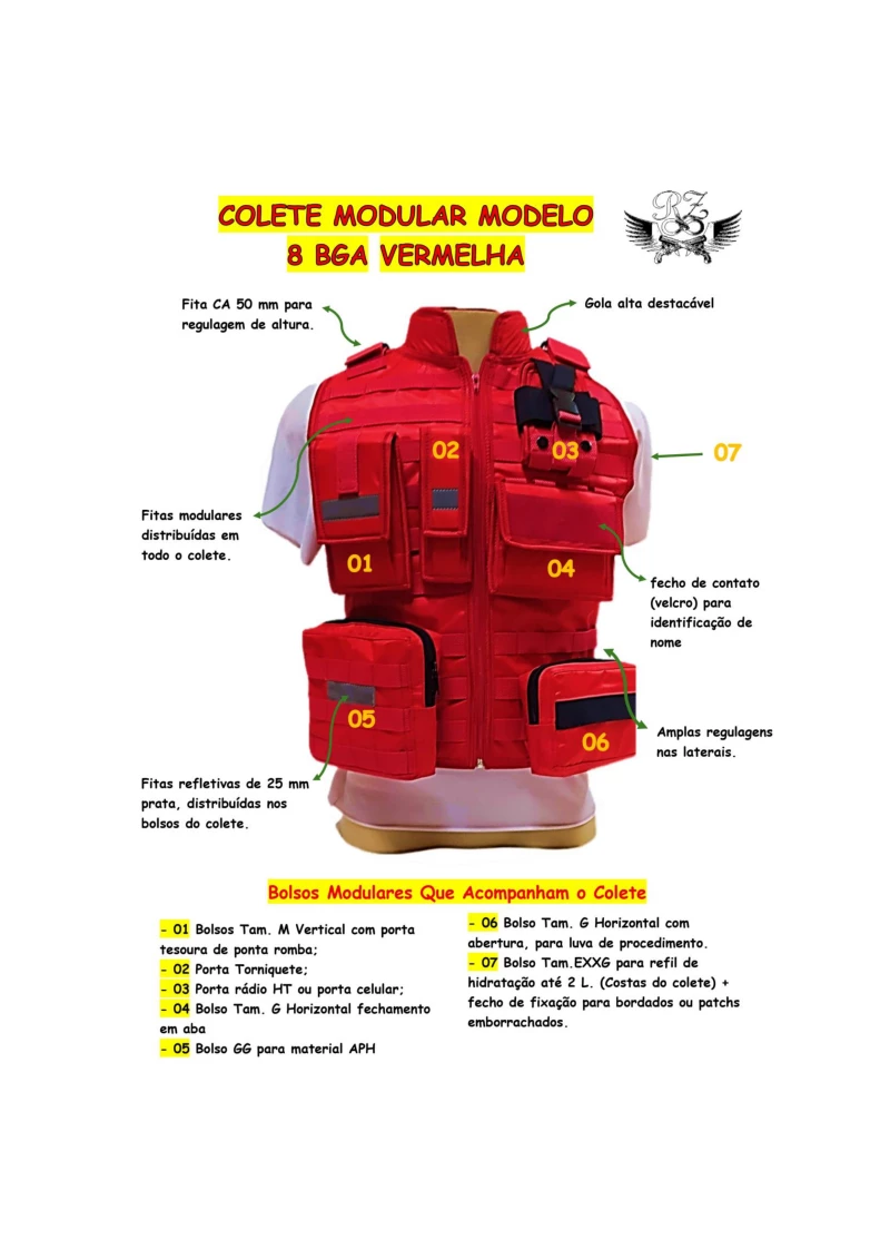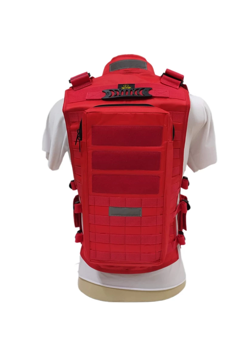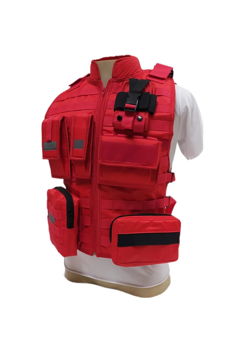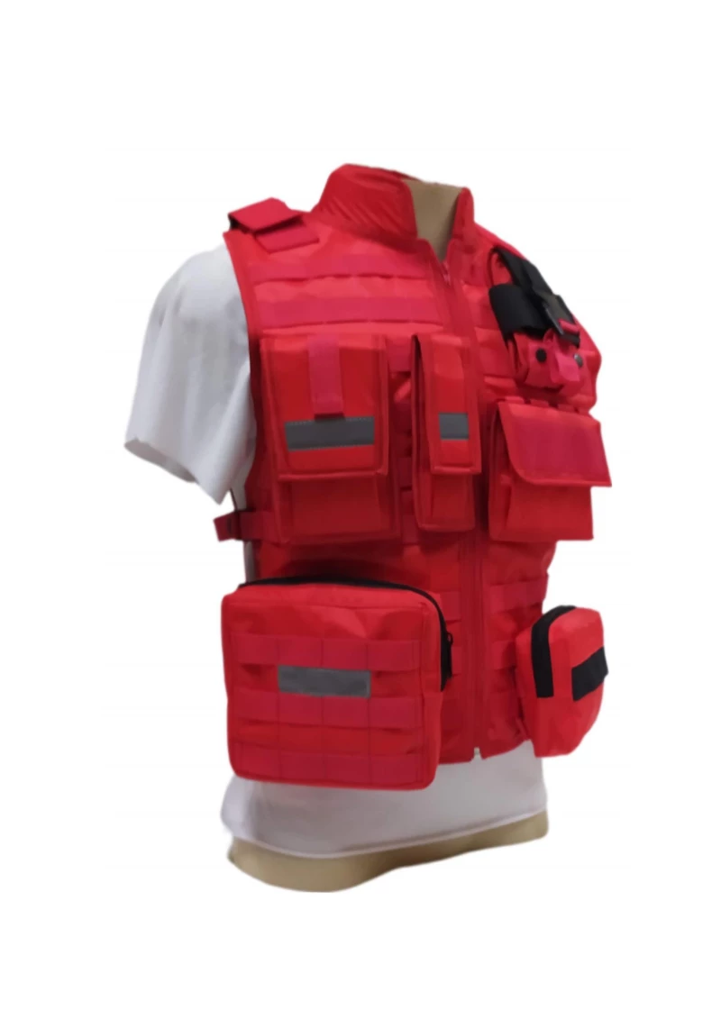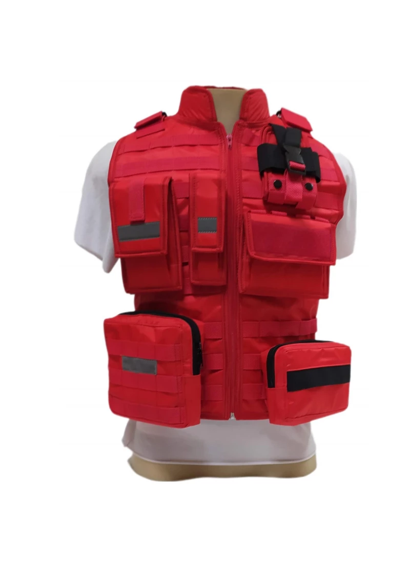 Colete Modular Vermelho 8 Bolsos Gola Alta