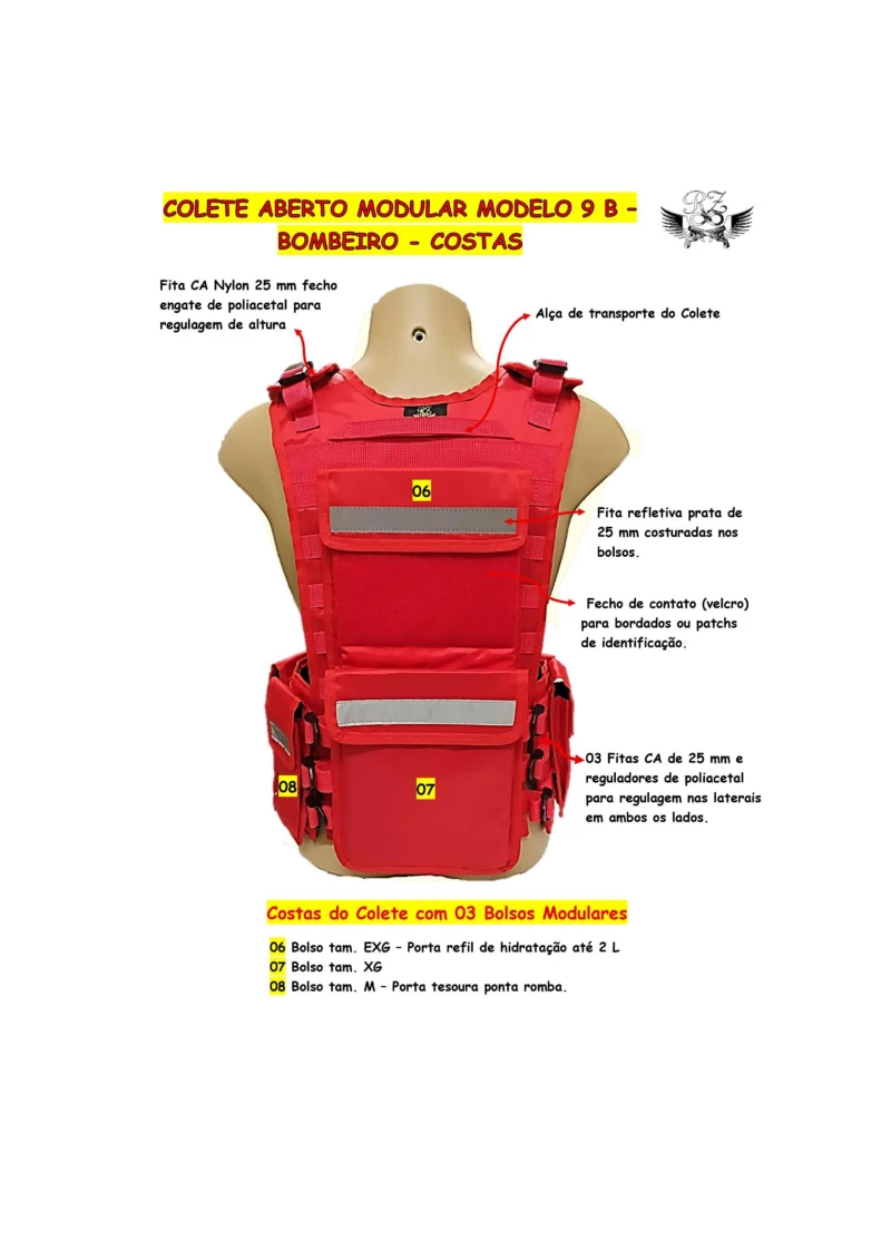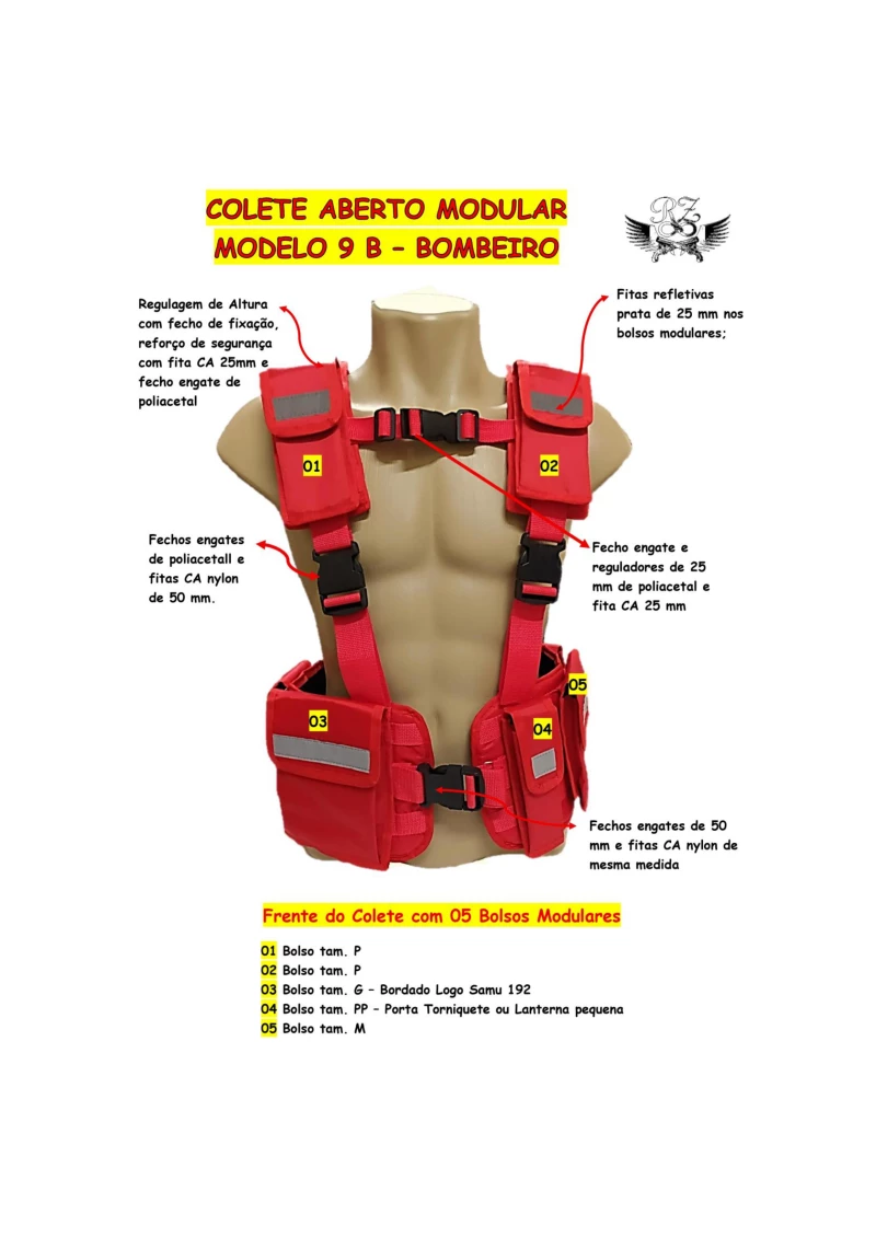 Colete Modular Aberto 9 Bolsos Bombeiro