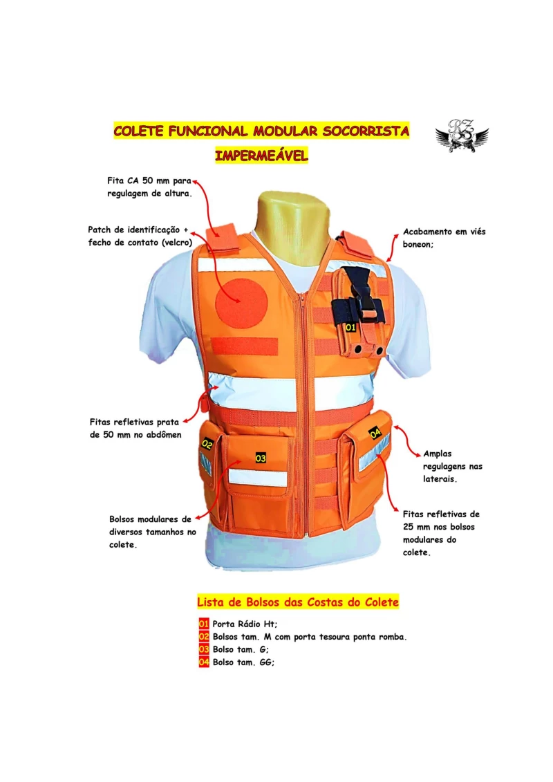 Você poderá montar seu colete dentro do que precisa para o dia a dia dentro de seu trabalho.