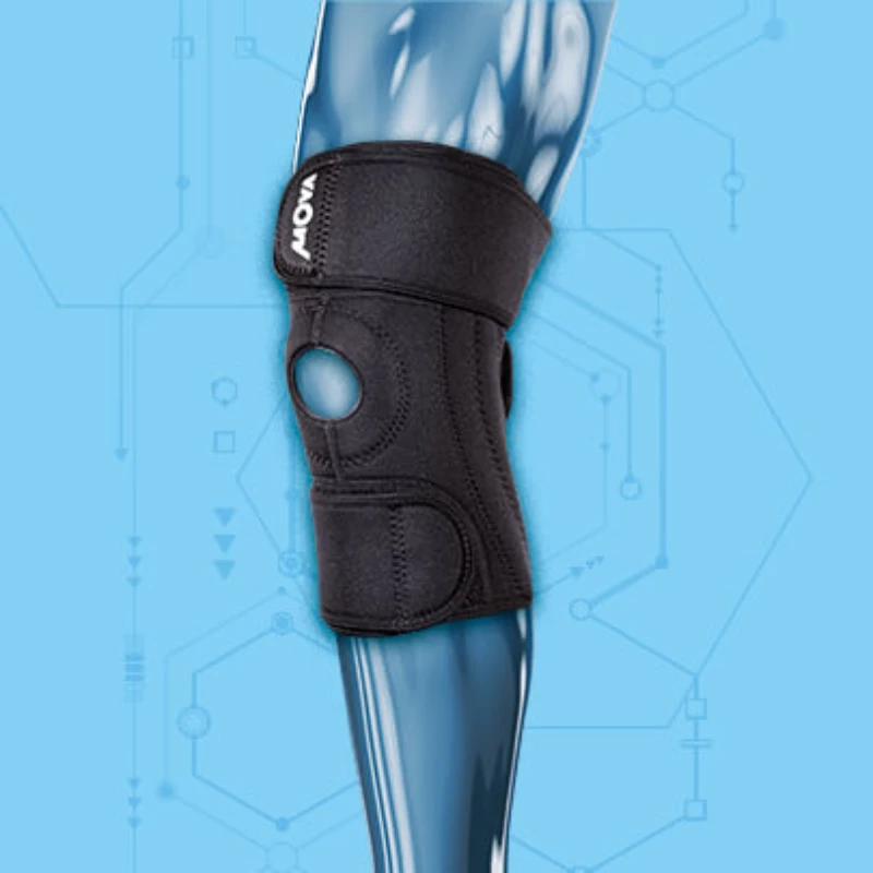 A Joelheira Ajustável com Hastes de Aço Flexíveis MOVA é indicada para auxiliar na compressão e proteção da região do joelho.