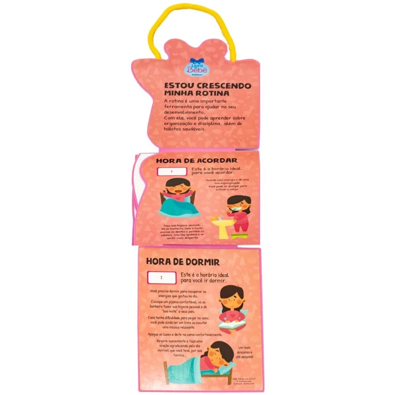 Acabamento: Livro-régua de EVA com alça de pano, acompanha uma cartela de adesivos.