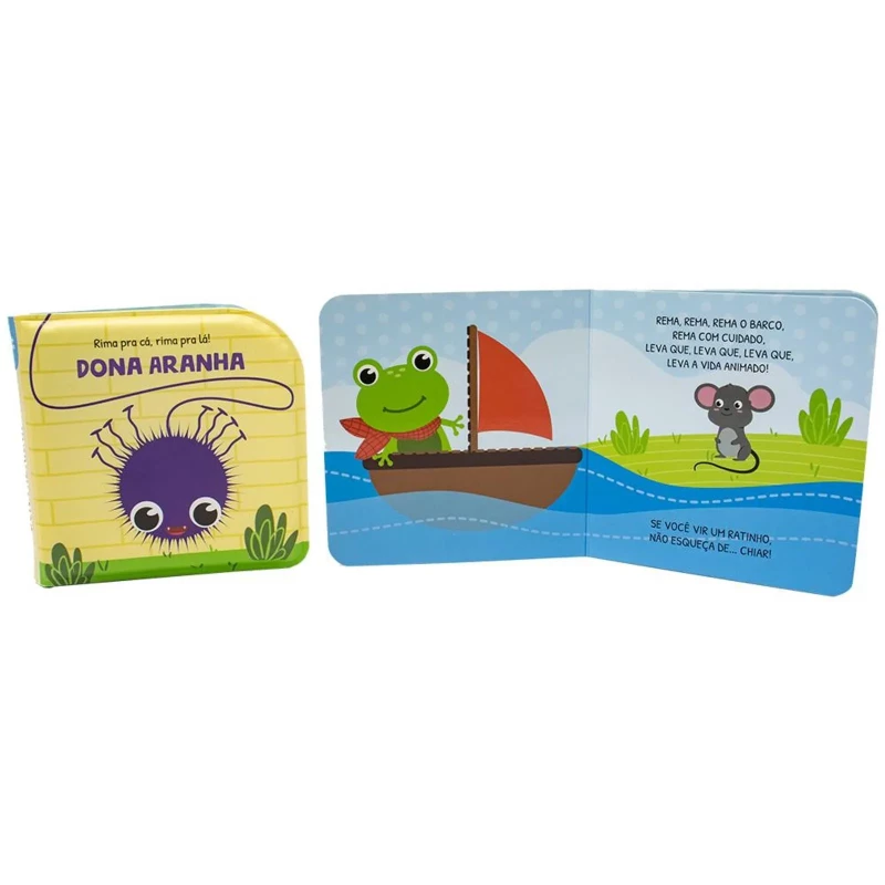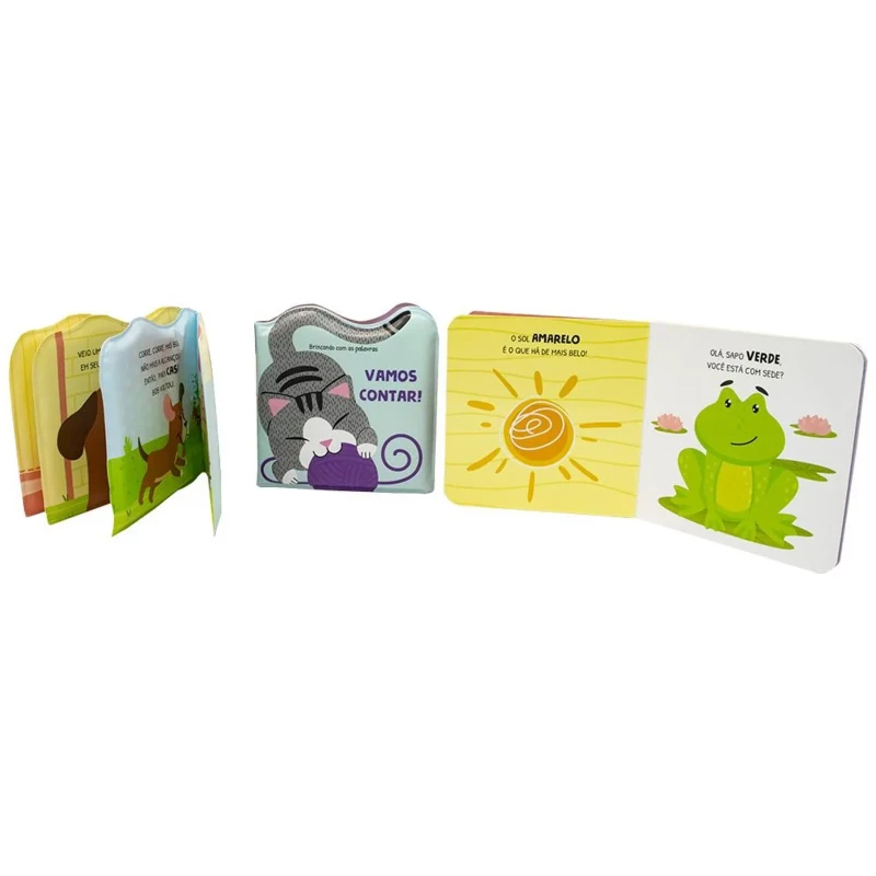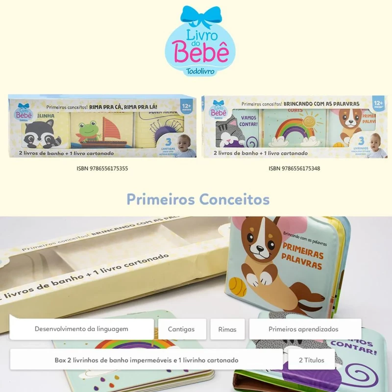 Acabamento: Cartonado com laminação brilho e hot stampig, acopanha dois livros de banho impermeáveis.