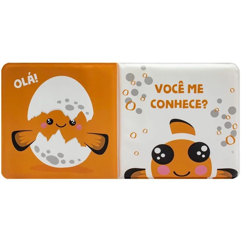 Acabamento: Livro de banho impermeável e esponja com textura macia.