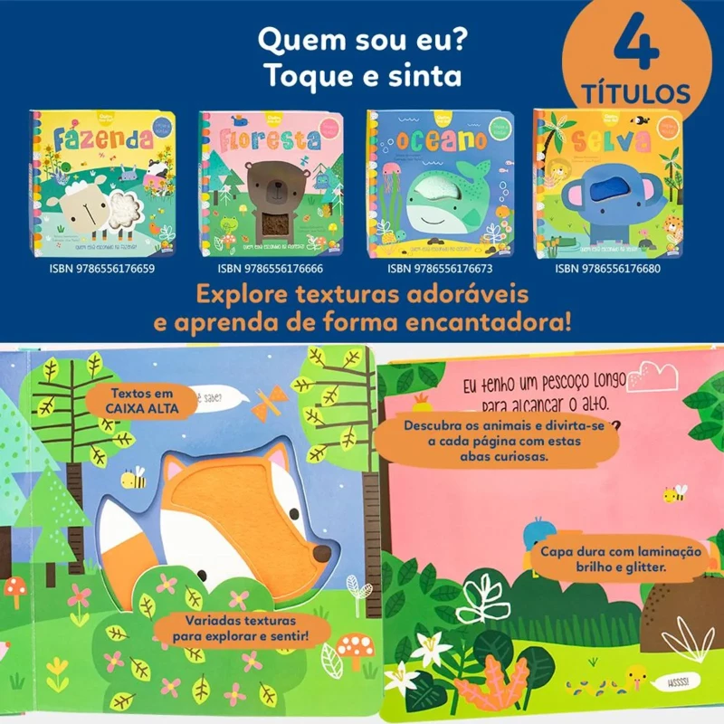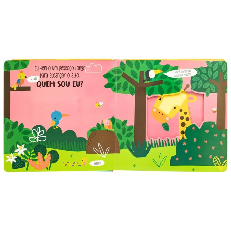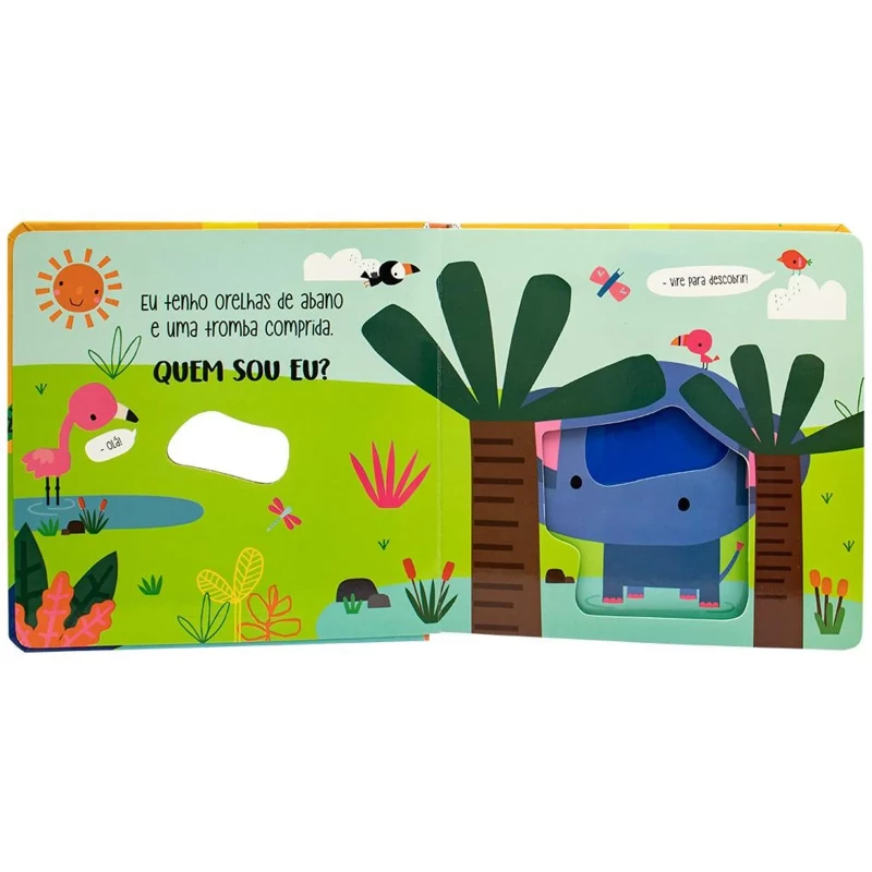 Quem sou Eu? Toque e Sinta: Selva é um livro divertido para descobrir quem está se escondendo na selva, com partes para tocar e sentir.