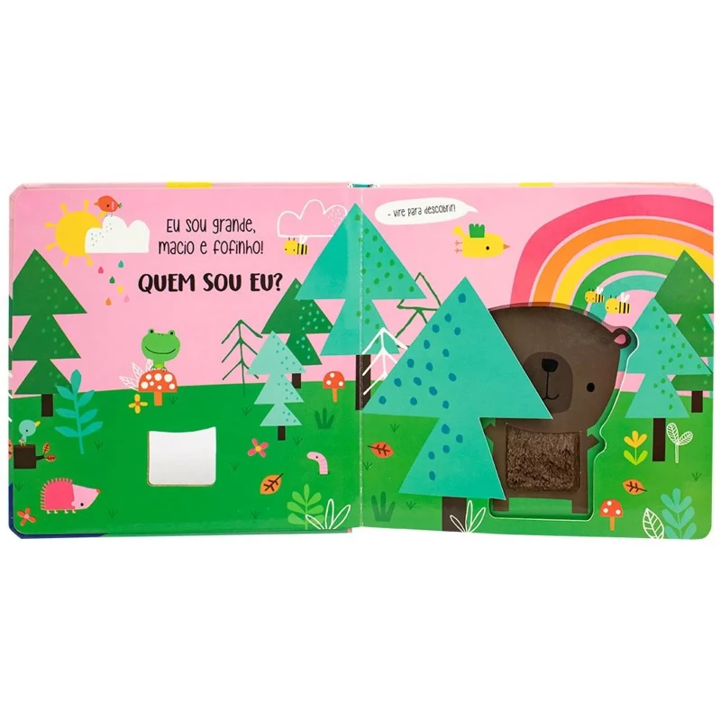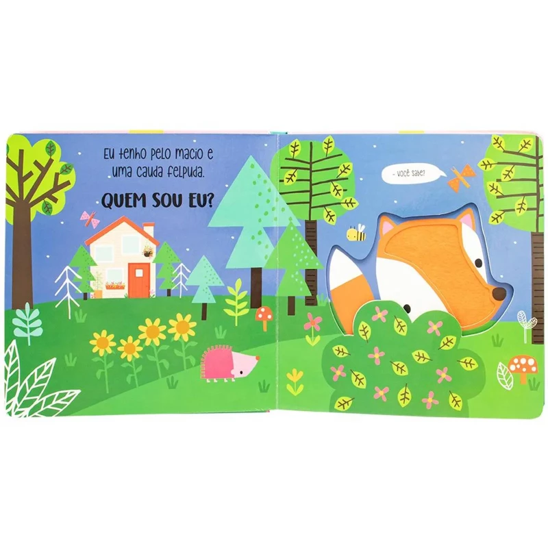 Quem sou Eu? Toque e Sinta: Floresta é um livro divertido para descobrir quem está se escondendo na floresta, com partes para tocar e sentir.
