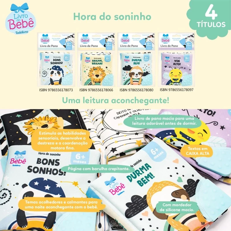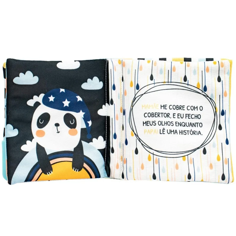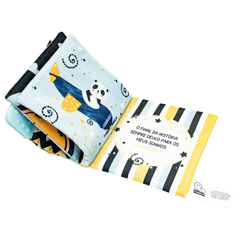 Acabamento: Livro de pano com mordedor, página com barulho crepitante.