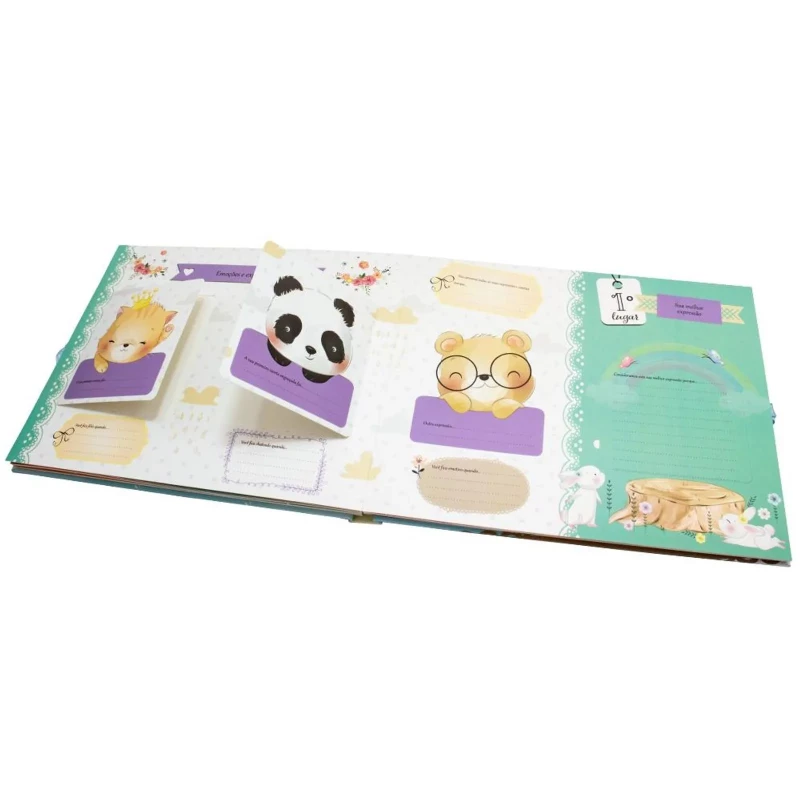 Momentos Especiais - Livro do Bebê é um livro dedicado às melhores recordações do bebê, com espaços destinados a cartinhas, frases inspiradoras e dados pessoais. O conteúdo permite registrar conquistas com fotos e palavras.