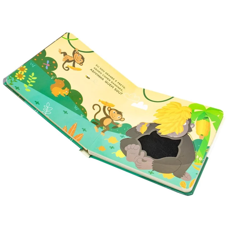 Espie e Toque: Selva é um livro interativo para adivinhar quem está escondido na selva. Com abas para levantar e texturas para sentir, o conteúdo convida a ler as palavras em voz alta e aprender sobre os animais da selva.