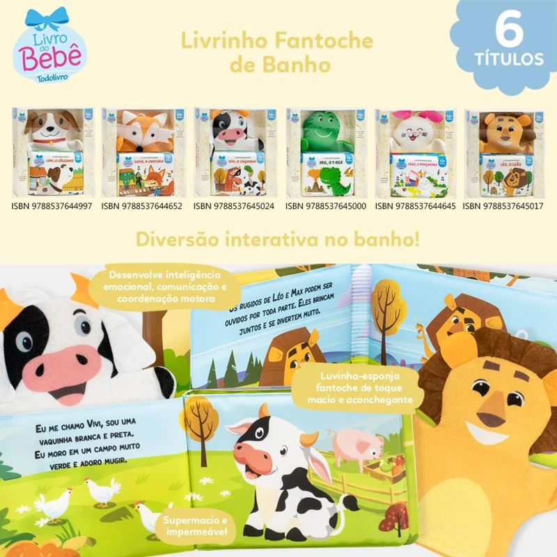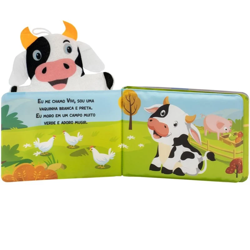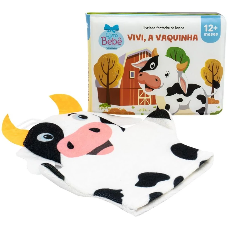 Livrinho fantoche de banho: Vivi, a Vaquinha é um livro para diversão interativa na hora do banho, pensado para o bebê.