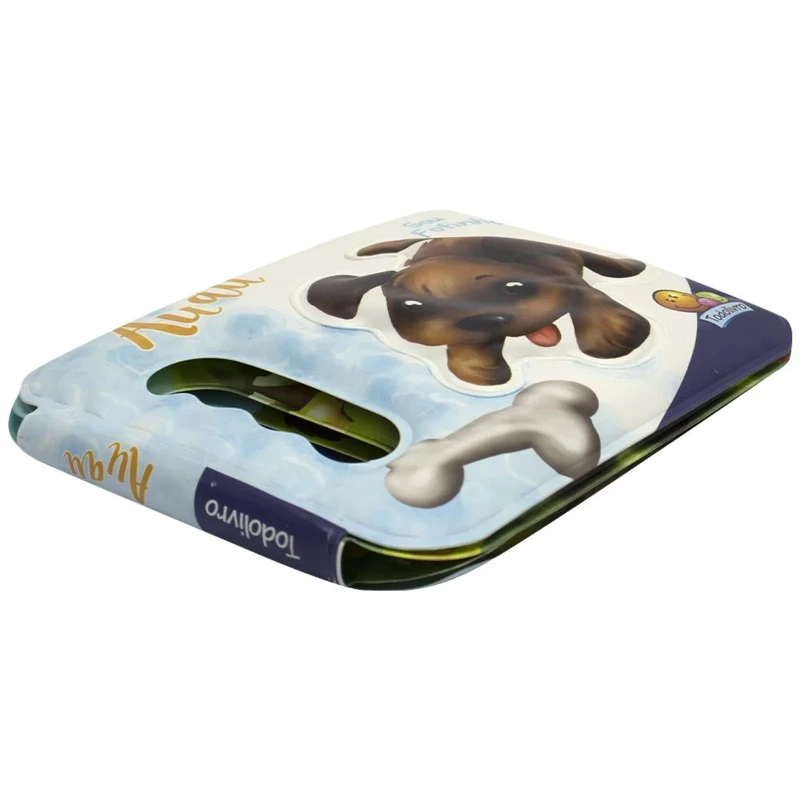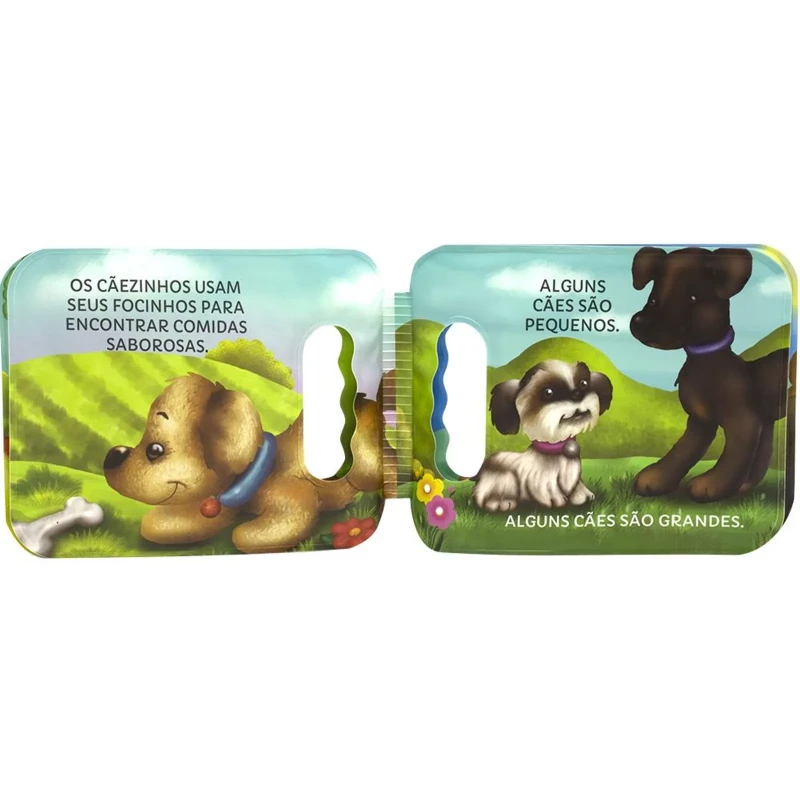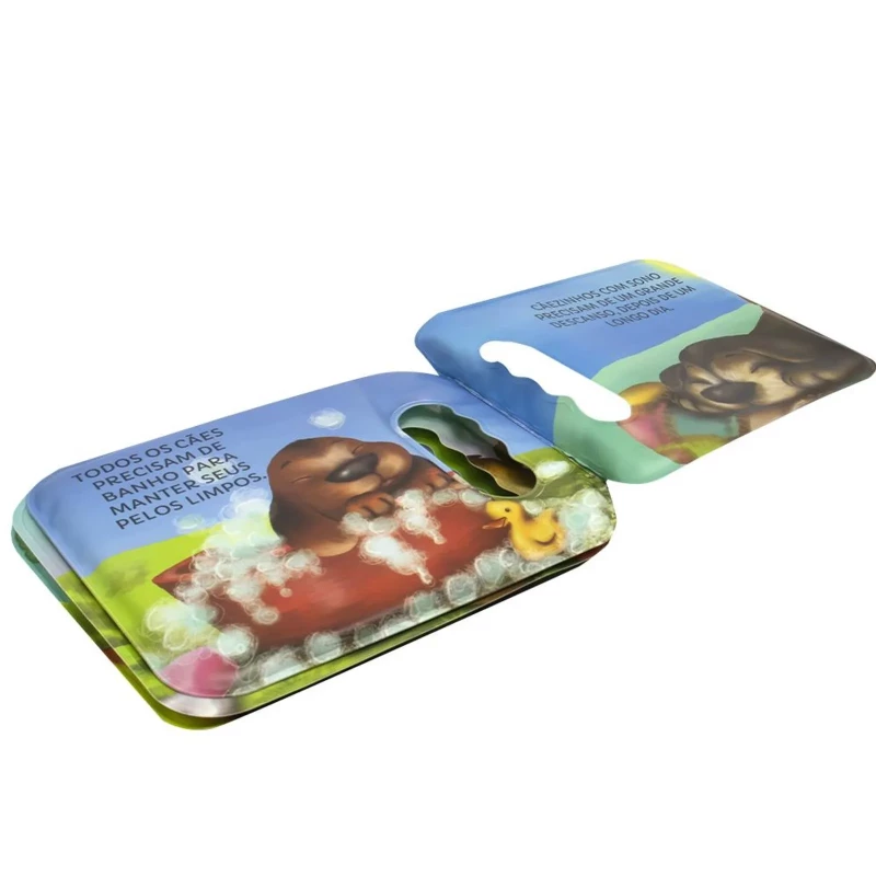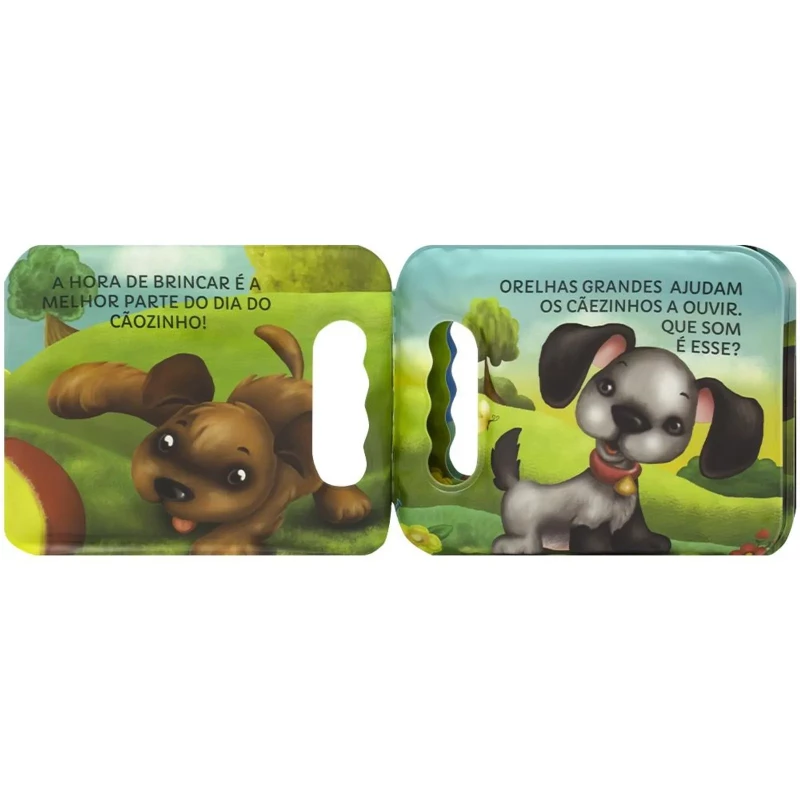 Acabamento: Livro impermeável com faca especial e capa com personagem em alto-relevo.