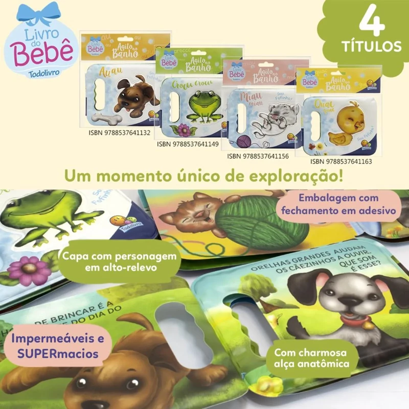 Agito no Banho II: Quac Quac é um livro que transforma a hora do banho em um momento de gostosa brincadeira para o bebê. O conteúdo encanta pela beleza das ilustrações e pelos simpáticos amiguinhos animais.