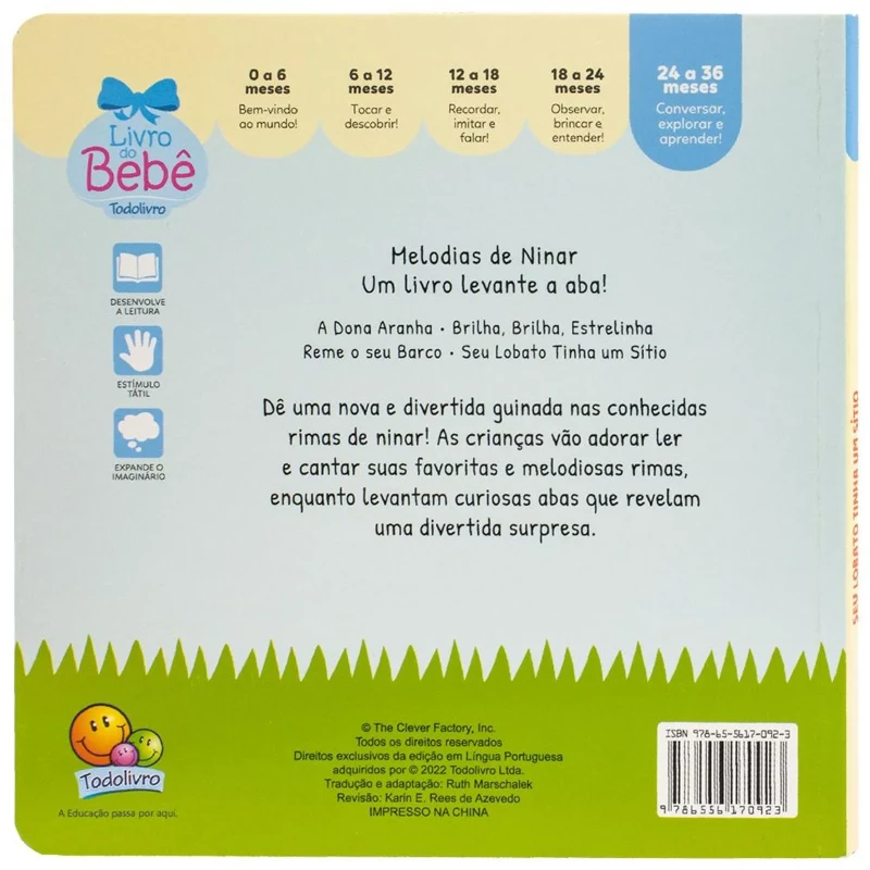 Melodias de Ninar - Um livro levante a aba! Seu Lobato convida a dar uma nova guinada nas rimas de ninar. As crianças podem ler e cantar rimas favoritas enquanto levantam abas que revelam surpresas.