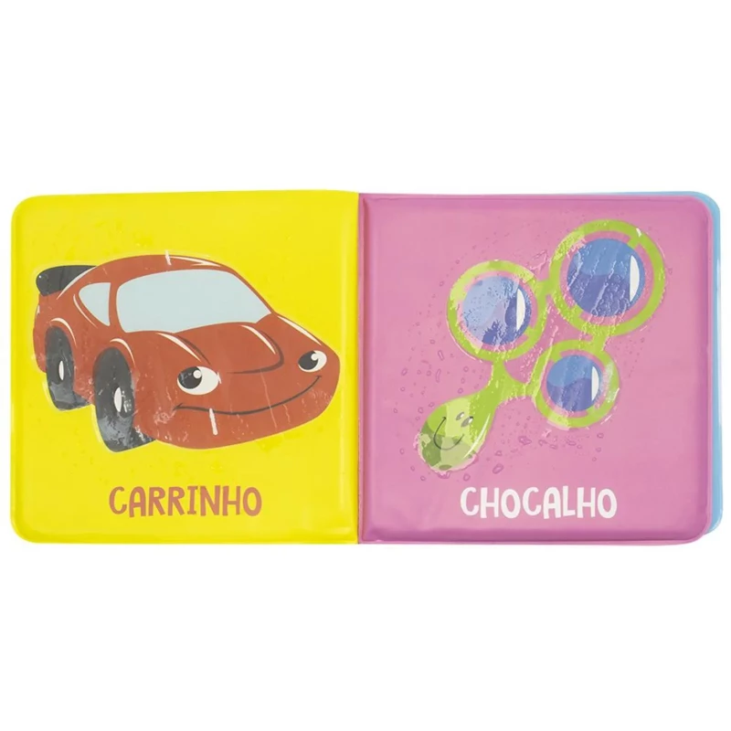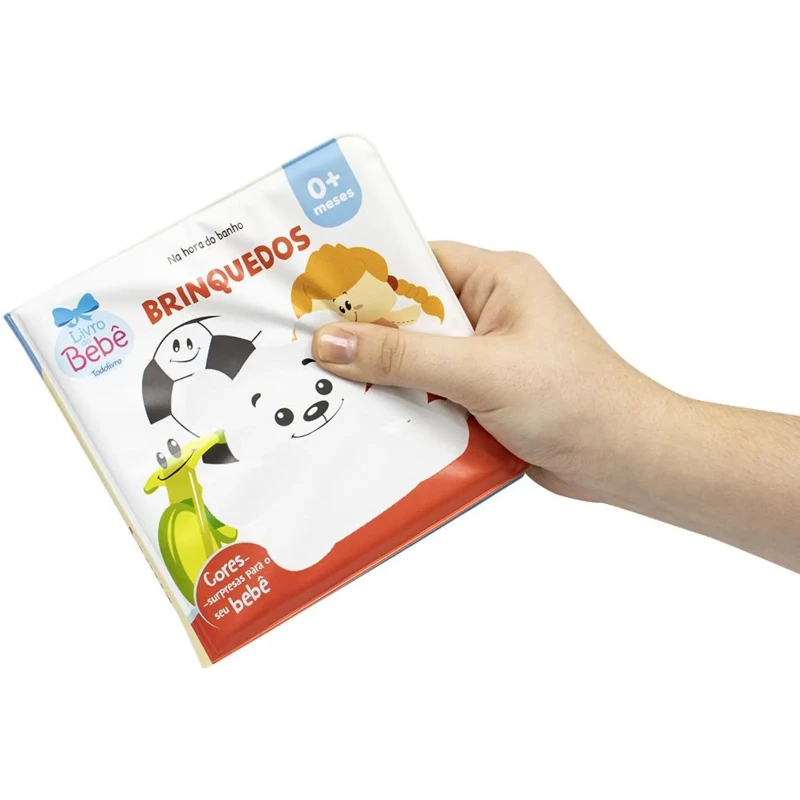 Na hora do banho II: Brinquedos é um livrinho que fica colorido em contato com água, estimulando a curiosidade do bebê e ajudando a descobrir as primeiras palavras de forma inovadora.