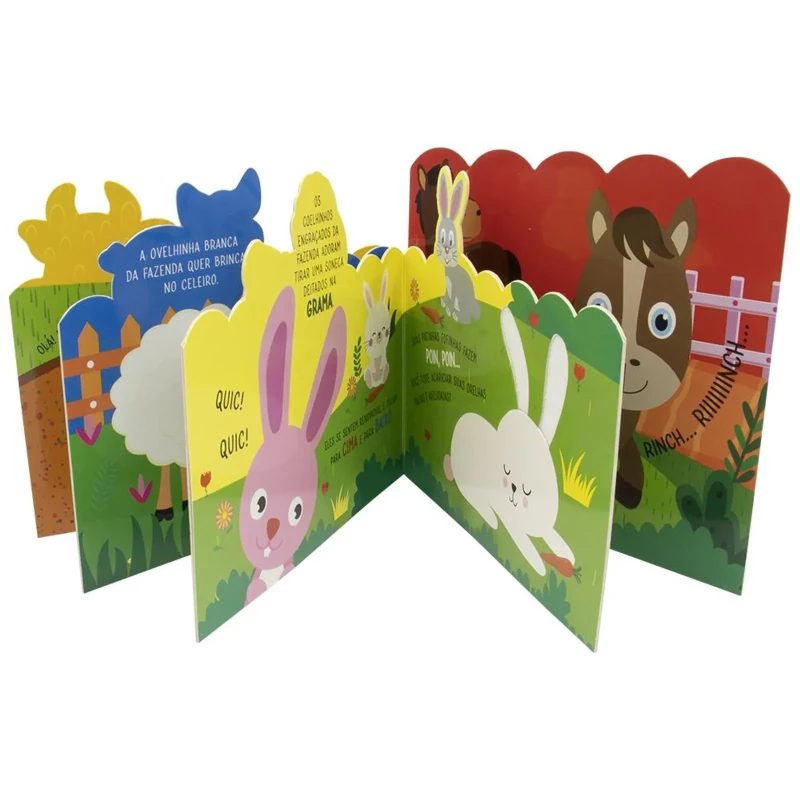 Acabamento: Cartonado recortado com recurso toque e sinta em todas as páginas.