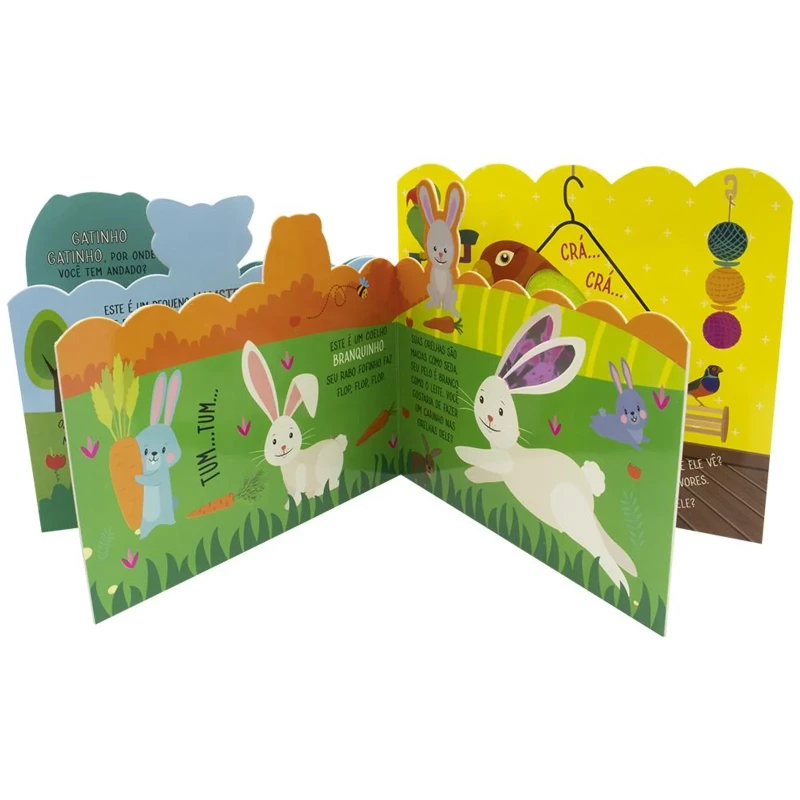 Acabamento: Cartonado recortado com recurso toque e sinta em todas as páginas.