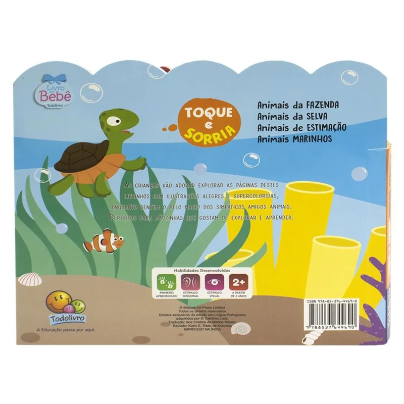 Toque e Sorria: Animais Marinhos é um livrinho com ilustrações alegres e supercoloridas para as crianças explorarem enquanto sentem o pelo macio dos simpáticos animais. Perfeito para mãozinhas que gostam de explorar e aprender.