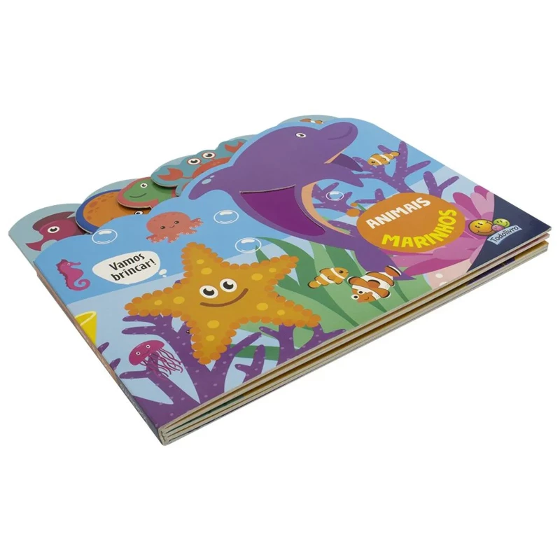 Acabamento: Cartonado recortado com recurso toque e sinta em todas as páginas.
