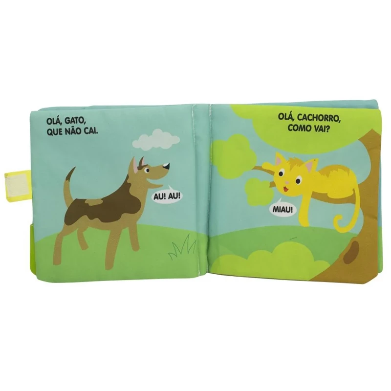 Acabamento: Livro de pano com alça-chocalho, mordedor, capa com barulho crepitante. Embalagem com alça e botão.