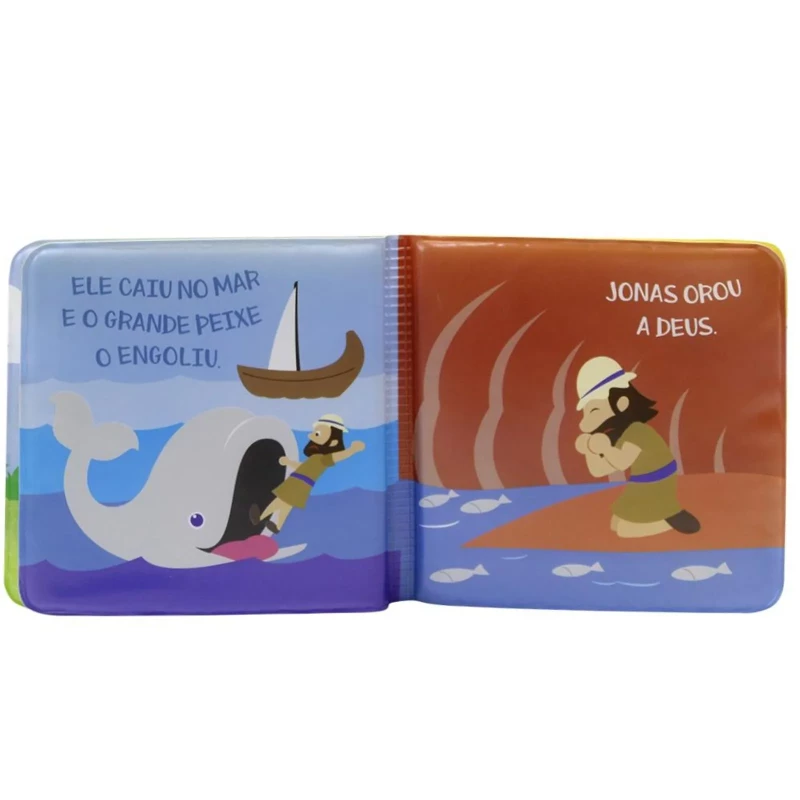 Bíblicos de Banho: Jonas é um livrinho de banho encantadoramente ilustrado que, de forma divertida, aproxima as crianças da Bíblia.