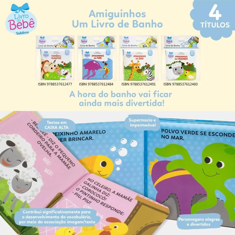 Amiguinhos - Um Livro de Banho: Amiguinhos do Mar é um livrinho de banho alegre e delicado que apresenta simpáticos amiguinhos em seu dia a dia cheio de aventuras.