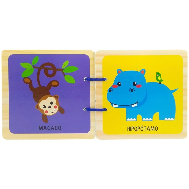 Acabamento: Livros de madeira com alças